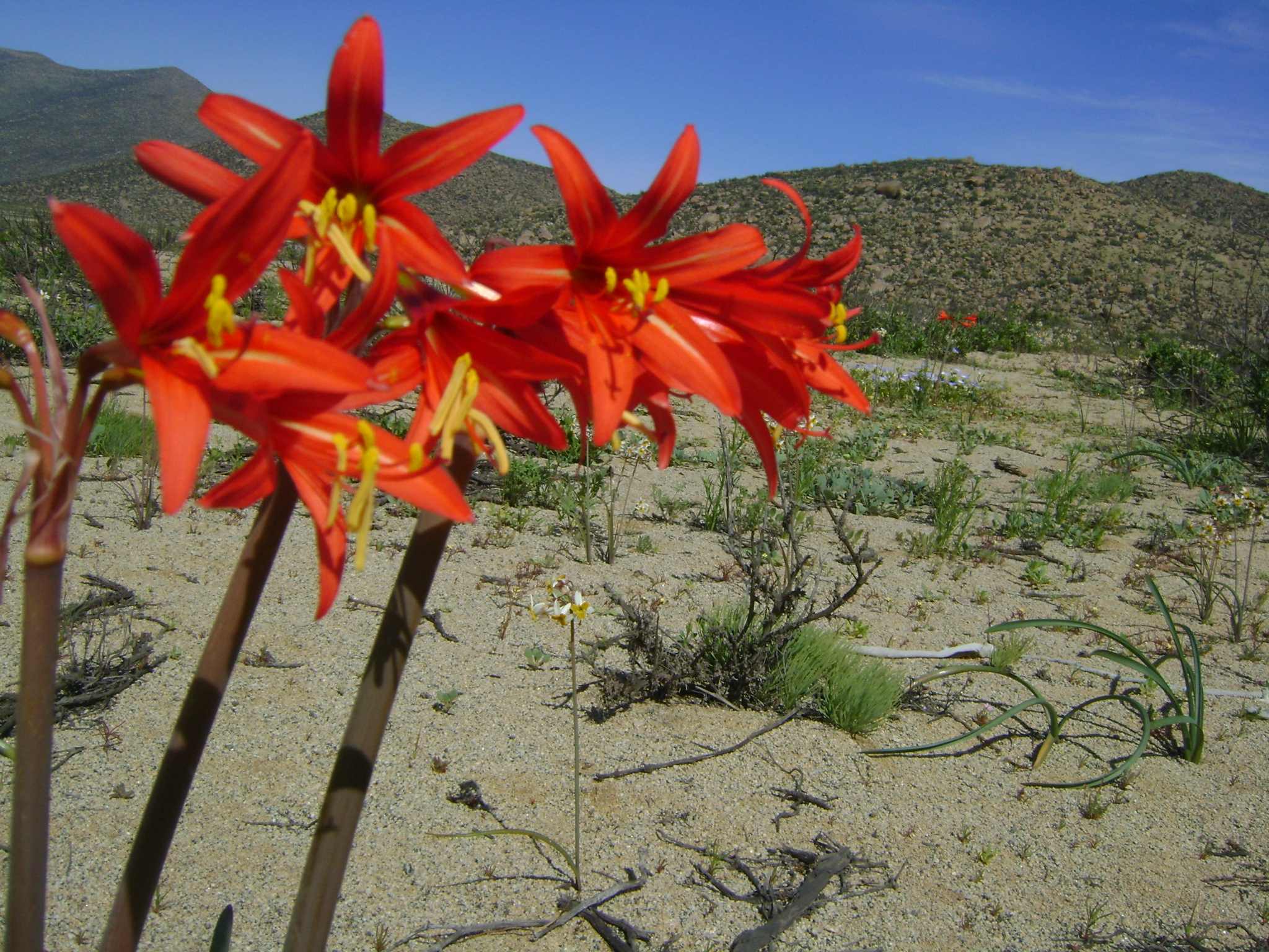 Pero el espectáculo no termina ahí. Freirina es conocida por sus diversos llanos, cada uno con su propio tapiz de flores. Puedes encontrar praderas de nolanas en un lado y loasas tricolor en otro. En algunos sectores, como el famoso Llano Amarillo, la protagonista es la añañuca amarilla, mientras que en otras zonas, la añañuca roja y diversas especies más coloridas se roban el show.
